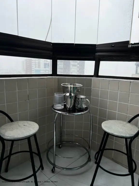 Apartamento com 1 dormitório, sala, cozinha, varanda, banheiro com box, Armários no quarto, no banheiros, na cozinha, área de serviço, e uma vaga de garagem.