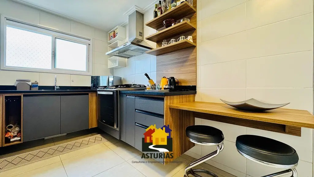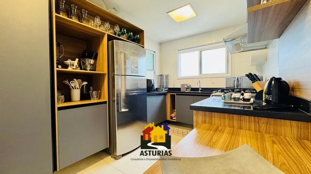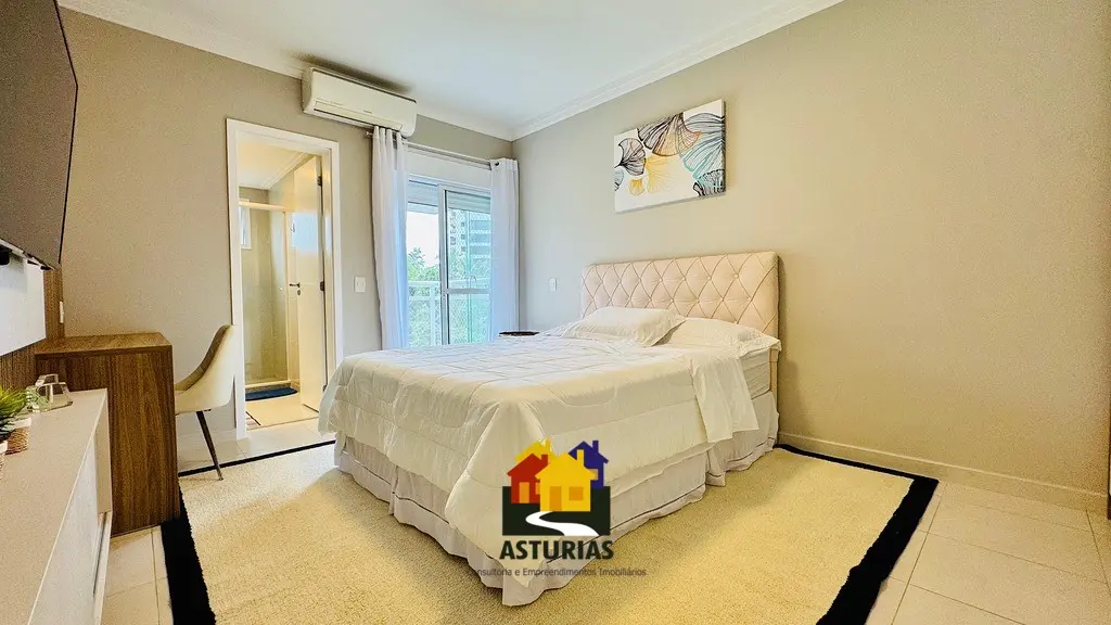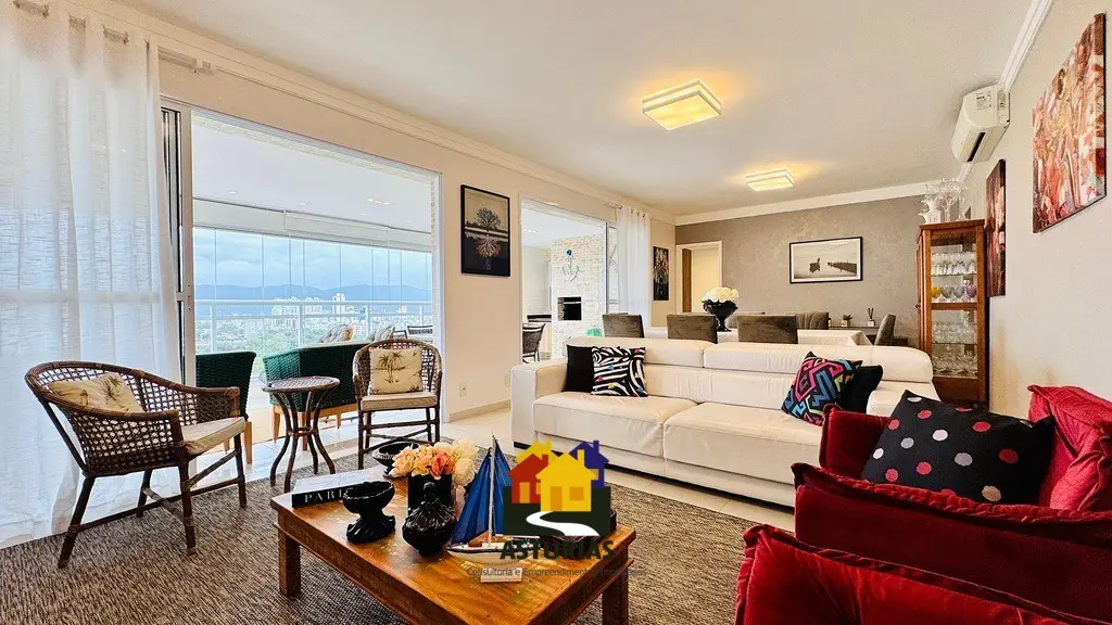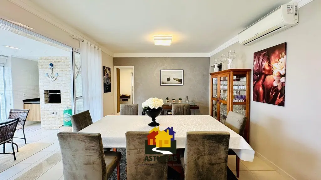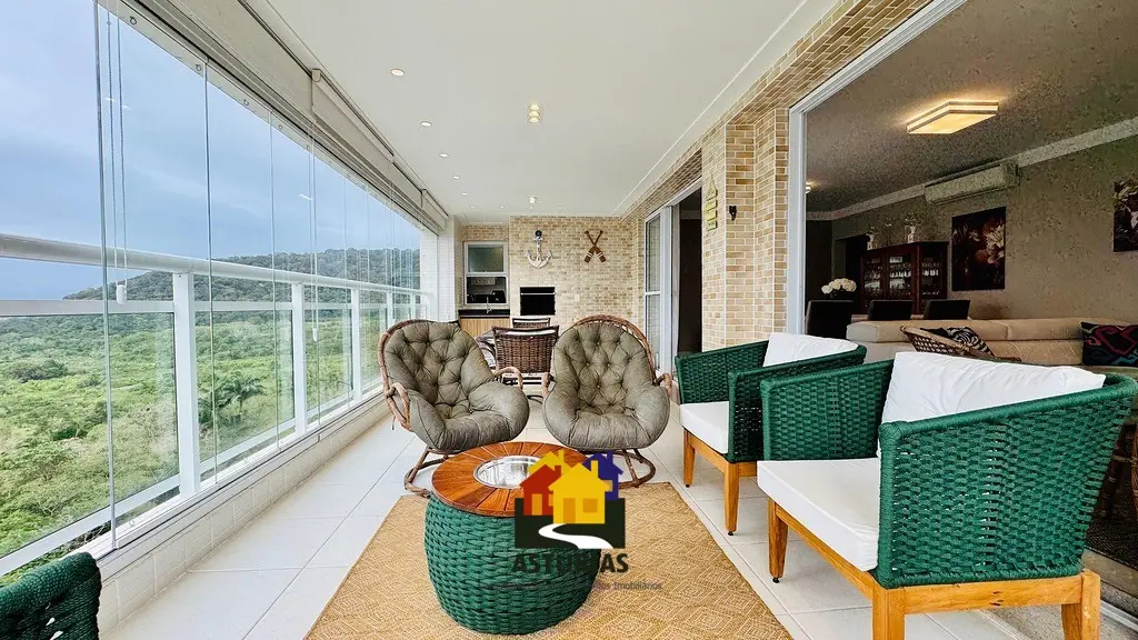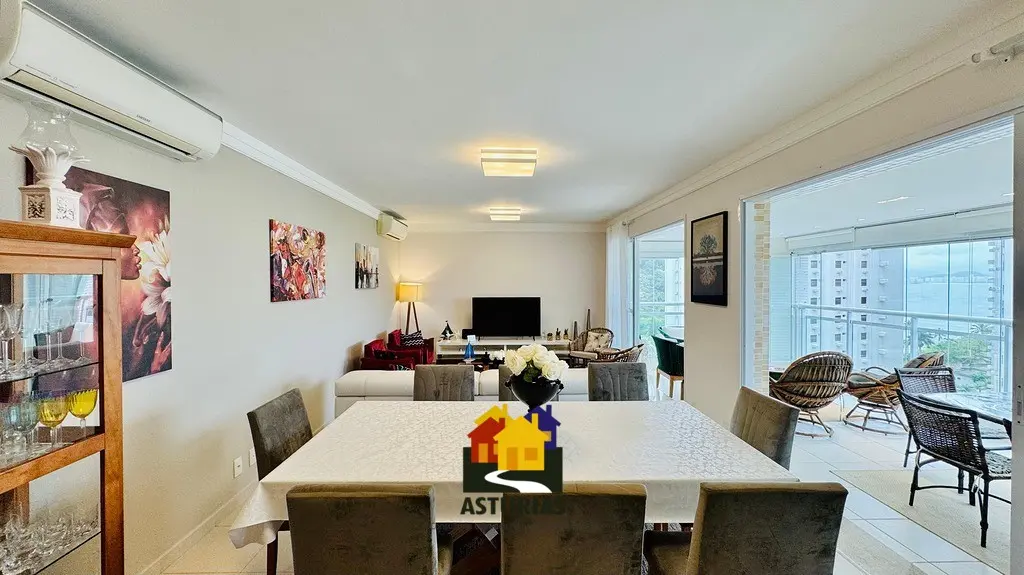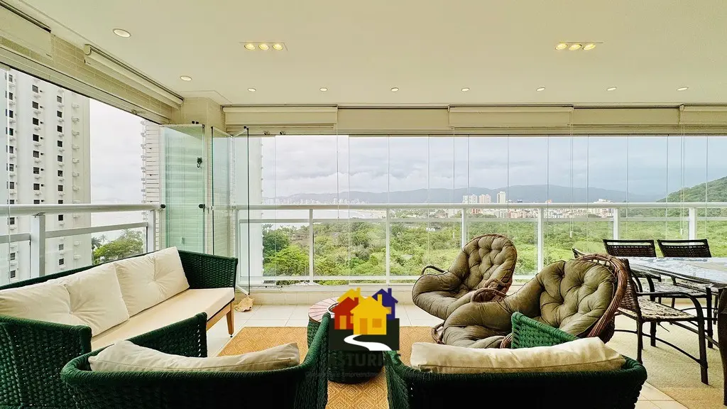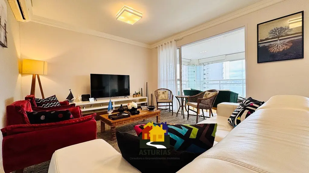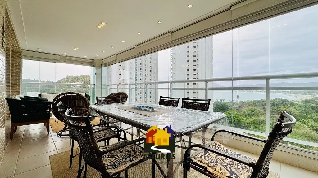 ÓTIMA OPORTUNIDADE NO GUARUJÁ Lindíssimo apartamento, com vista para o mar, totalmente mobiliado, com design moderno e sofisticado, em excelente localização no Guarujá. O imóvel possui: 03 suítes, sendo uma máster, com varanda e cortinas de vidro; Armários embutidos novos; Ar condicionado nos quartos e na sala; Sala ampla com dois ambientes, interligada com uma varanda gourmet, com churrasqueira, mesa, cadeiras, sofá e poltronas, com vista para o mar; Hall social privativo (elevador na porta do apartamento); Lavabo; Cozinha interligada com a churrasqueira, equipada com armários planejados novos, micro-ondas, fogão, exaustor, geladeira; Lavanderia com armários planejados; Dependência de empregada; Banheiro de serviço; 2 vagas de garagem; Condomínio possui portaria e segurança 24 horas, piscinas aquecidas, salão de festas, quadra e academia; 158 m2, muito bem distribuídos.