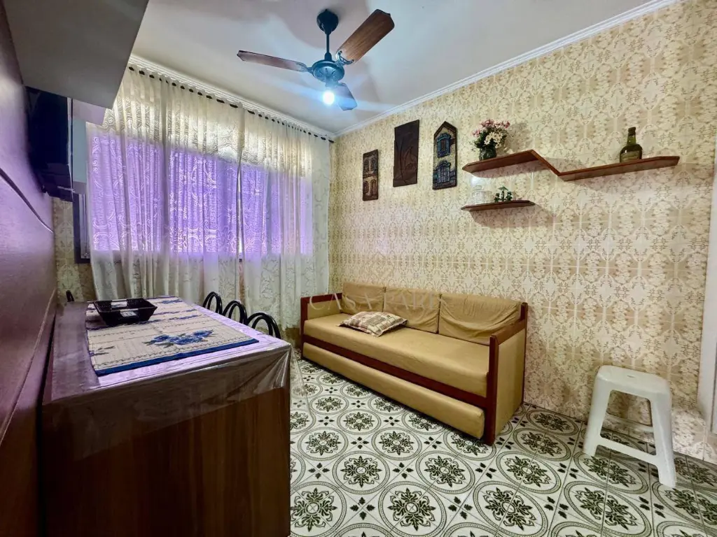 Apartamento à venda no Canto do Forte em Praia Grande, contendo 02 quartos, sala 02 ambientes, cozinha americana, banheiro, 01 vaga na garagem coletiva do prédio, cômodos espaçosos, bem claro e arejado.