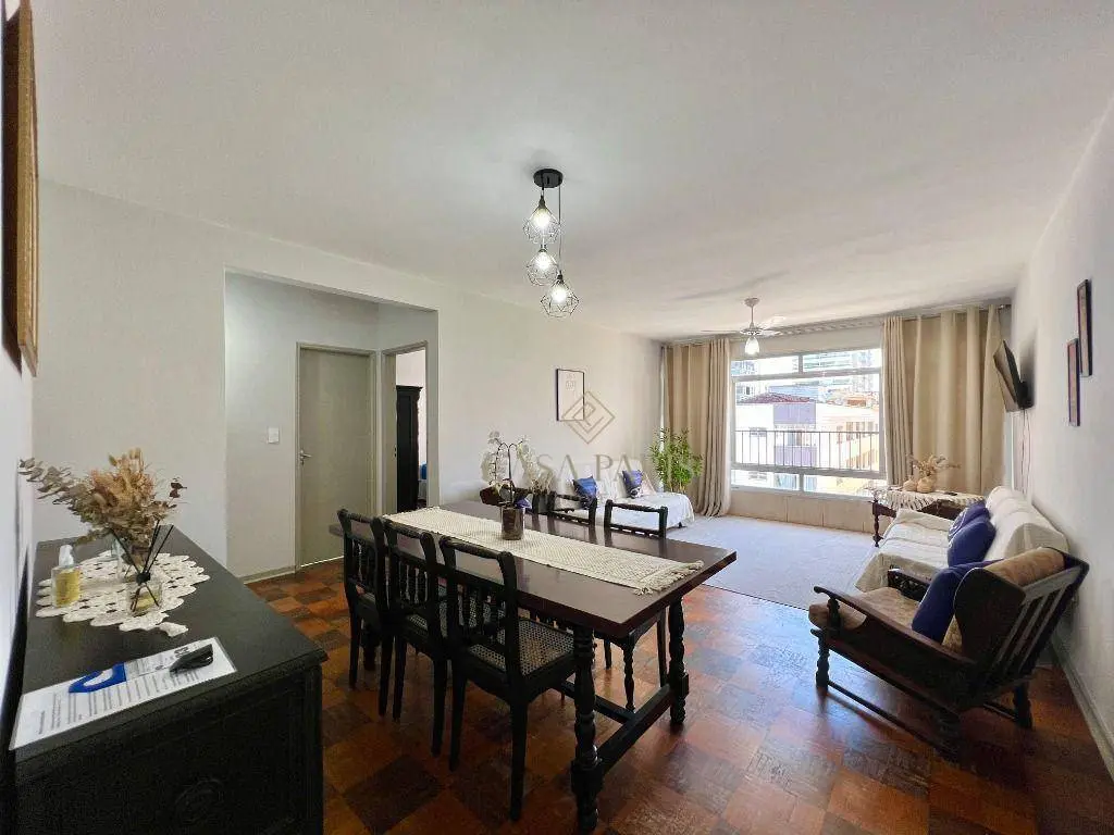 Apartamento claro, muito bem arejado, mobiliado, com sala ampla, 02 ambientes, cozinha, área de serviço, 02 banheiros social, 02 dormitórios amplos, frente rua, com 01 vaga de garagem.
