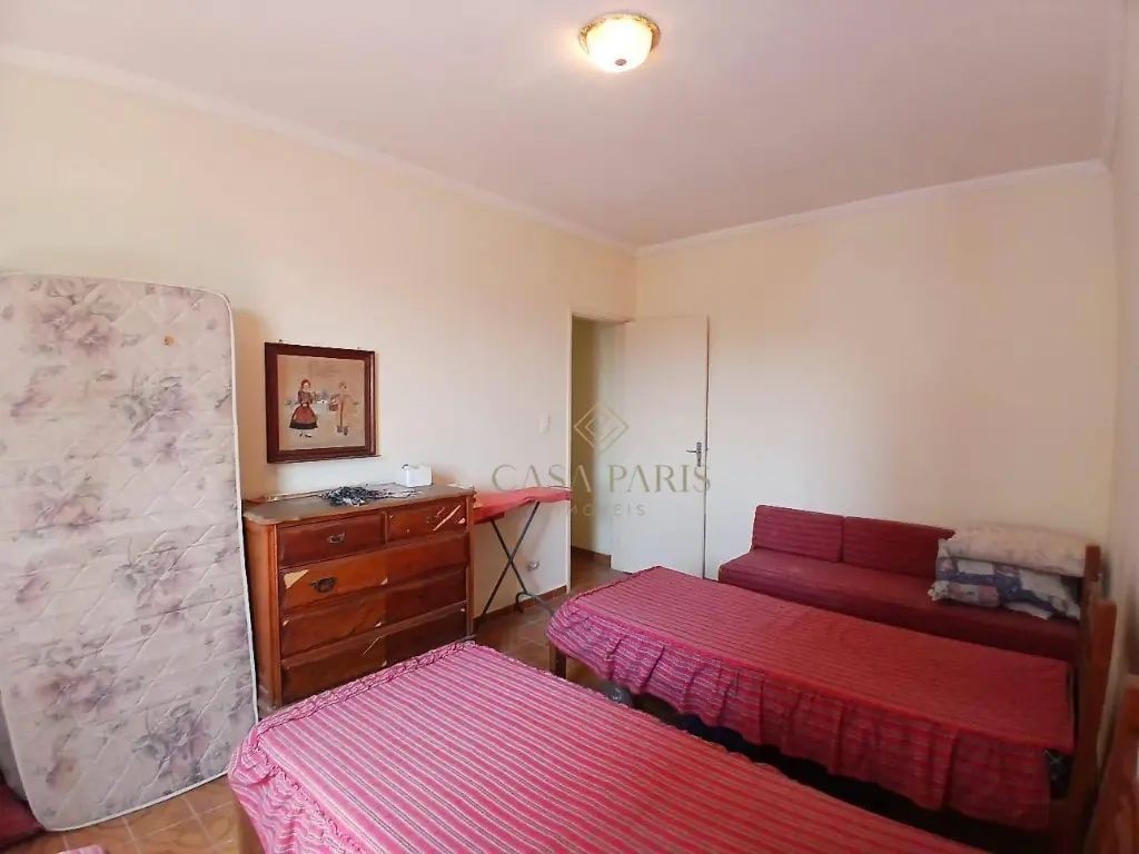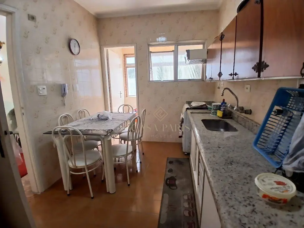 Apartamento com 2 dormitórios, 1 banheiro, sala para 2 ambientes, cozinha, área de serviço e 1 vaga de garagem.