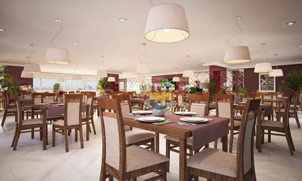 pistas de boliche, salão gourmet e deck descoberto.