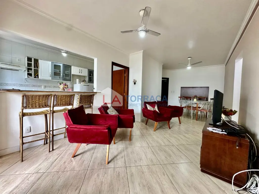 Referência 15748 - Apartamento Alto Padrão, Frente Mar, Mobiliado, com 3 dormitórios, sendo 1 suíte, 2 salas, sacada, cozinha, área de serviço, direito a 2 vagas de garagem. Prédio com elevador, salão de festas e jogos, piscina. Excelente localização no bairro da Guilhermina em Praia Grande, perto dos principais comércios do bairro.