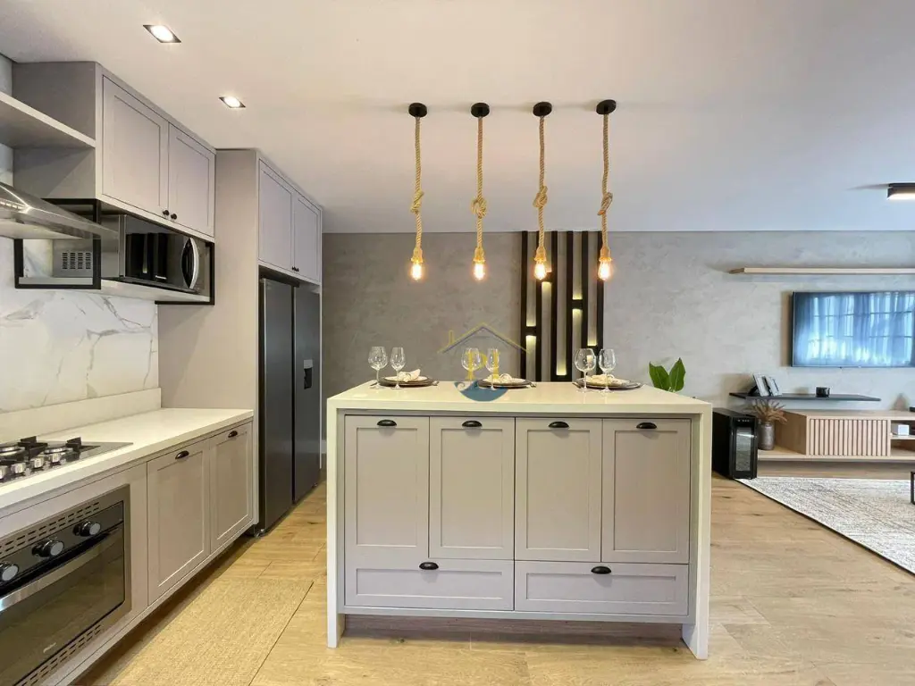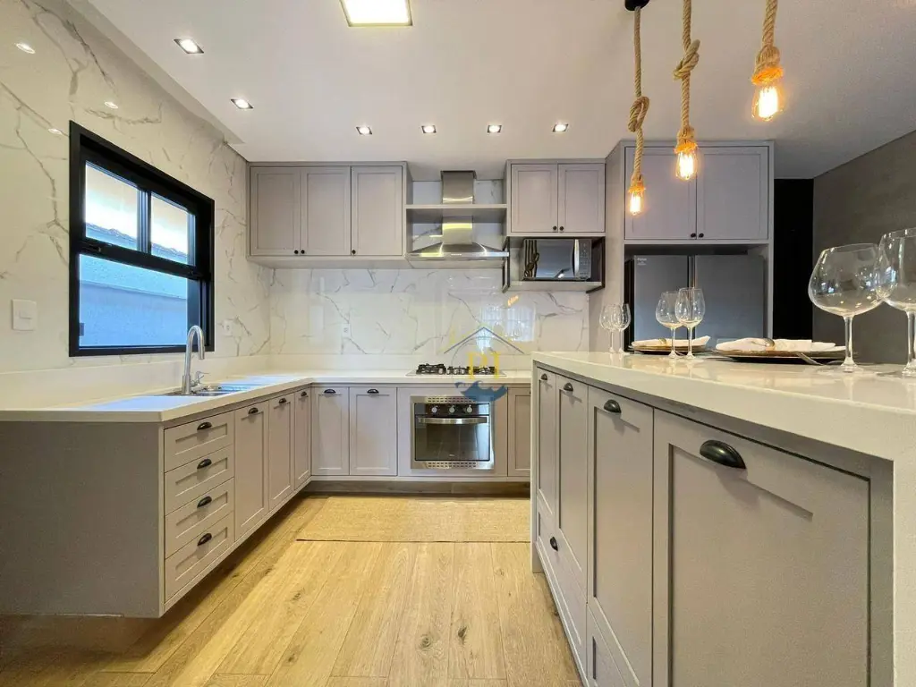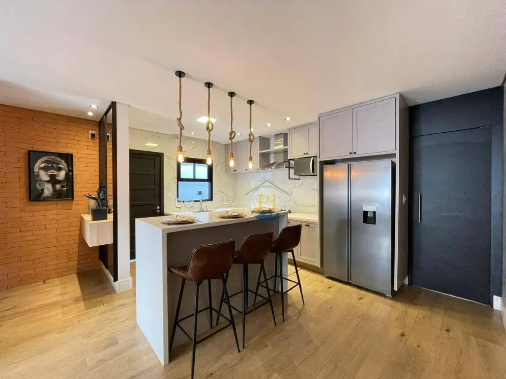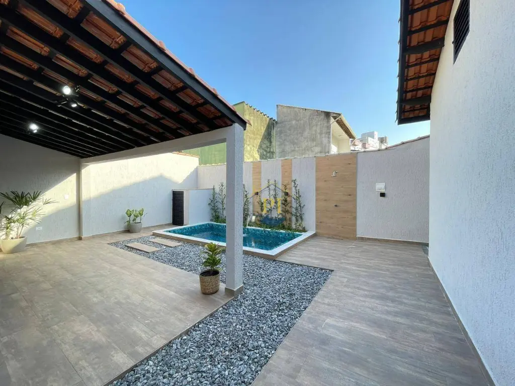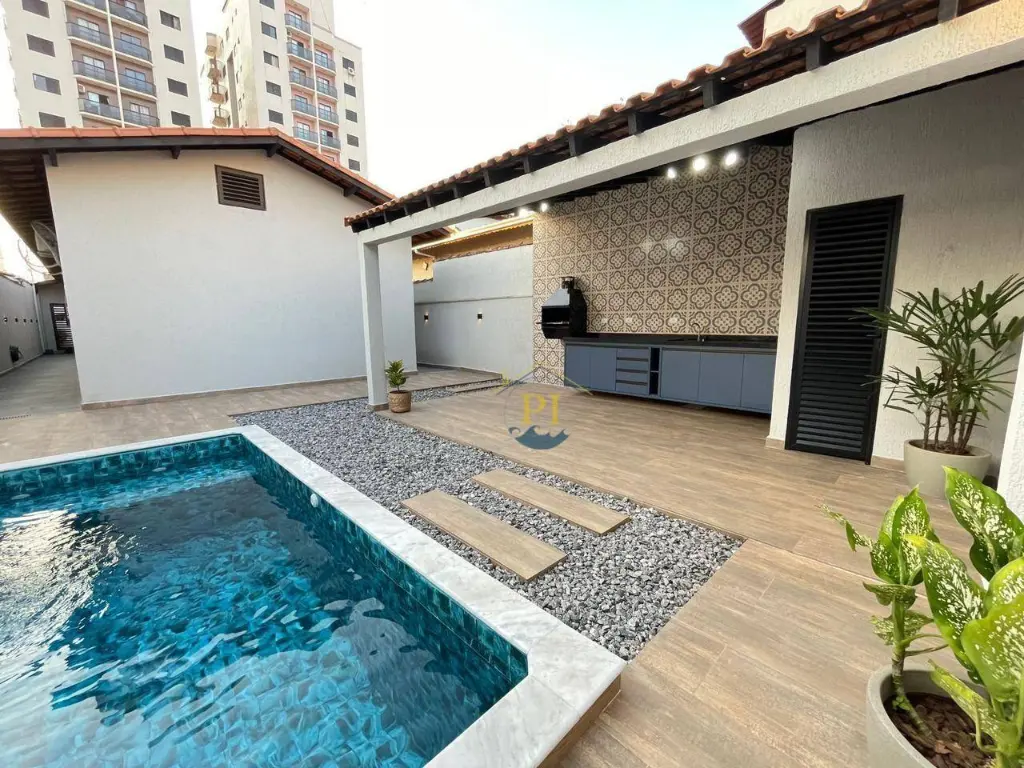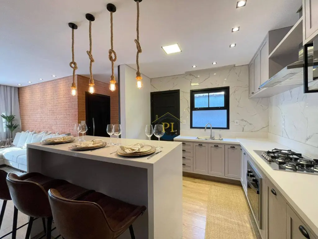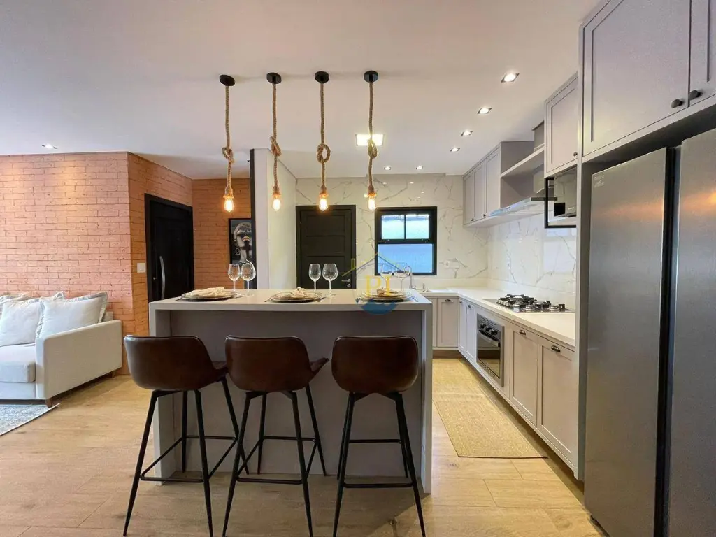 Casa térrea isolada com 155m² de área útil e 280m² de área total. Imóvel com 3 dormitórios sendo 1 suíte, 3 banheiros, sala, cozinha, totalmente mobiliada, 4 vagas de garagem e piscina.