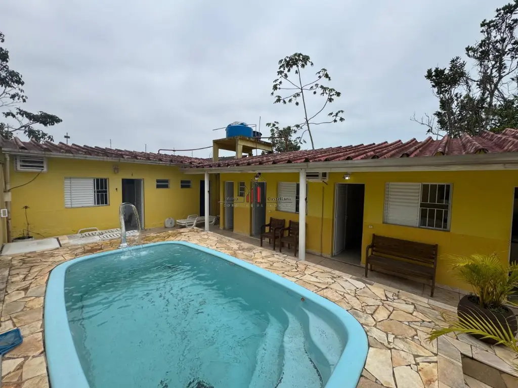 Casa no bairro Loty em Itanhaém, no litoral sul de São Paulo, lado serra sendo 1 km da rodovia, em rua de cascalho. Imóvel com área total de 230 m² e área construida de 100 m². Possui churrasqueira, piscina, 02 suítes, 01 WC social,01 WC externo e vaga para 3 automóveis.