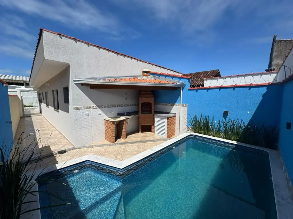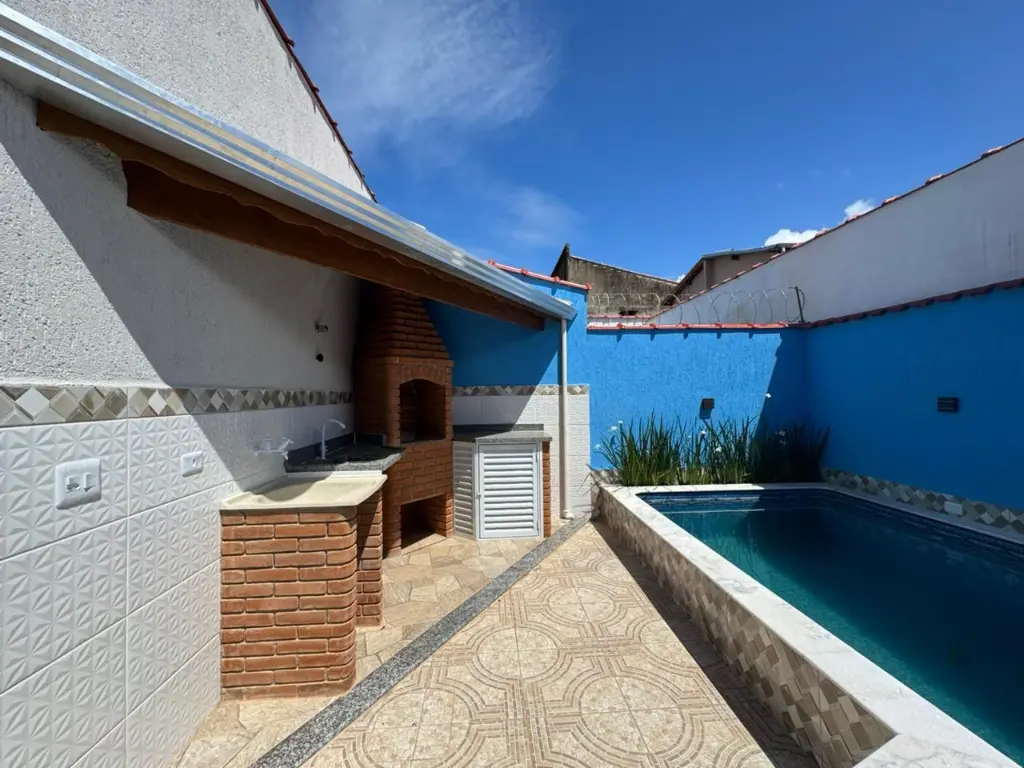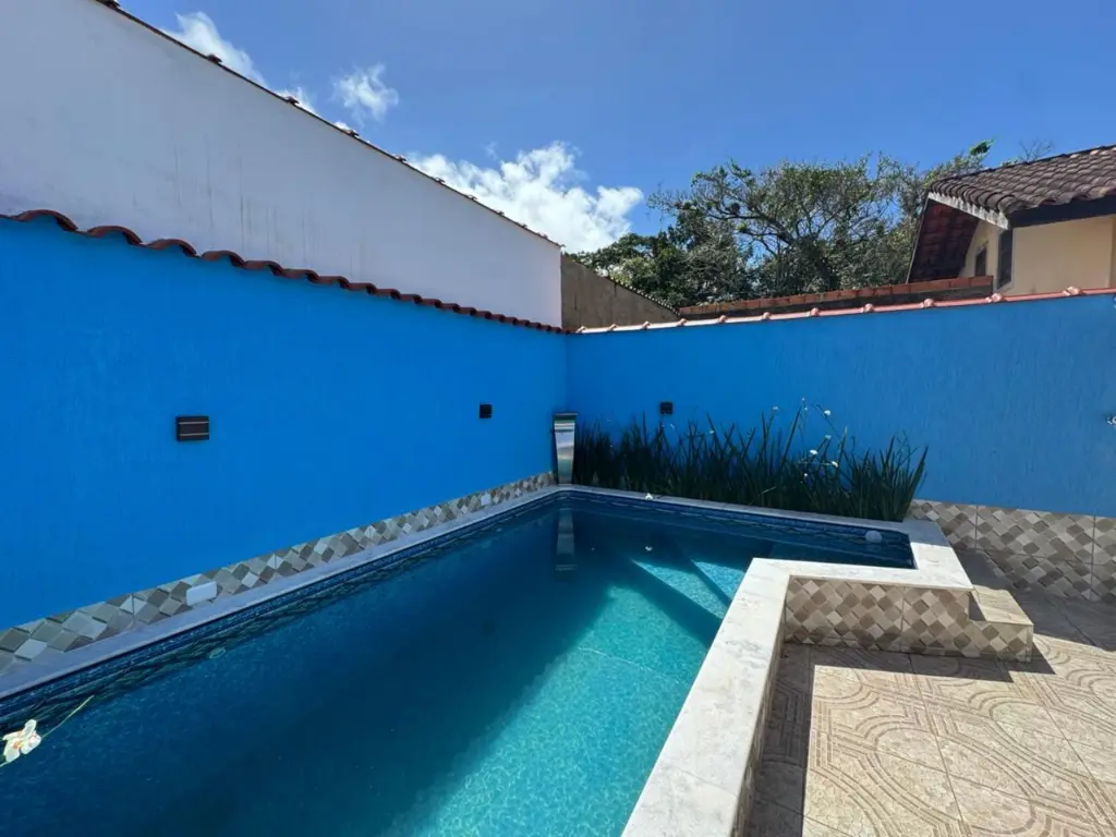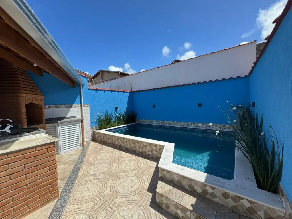 Casa com piscina, localizada no bairro Nossa Senhora do Sion em Itanhaém/SP. Bairro de moradores fixos e próxima a comércios locais.
