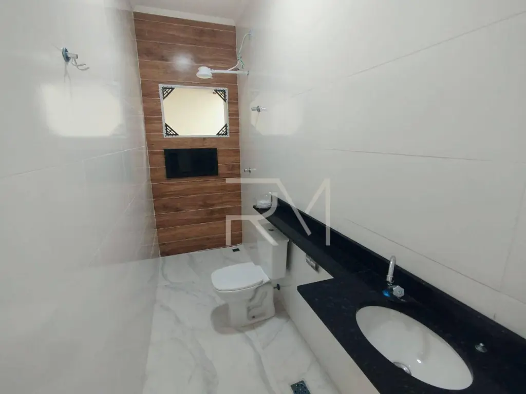 São 2 quartos, sendo 1 suíte, além de banheiro social e banheiro externo para maior comodidade.