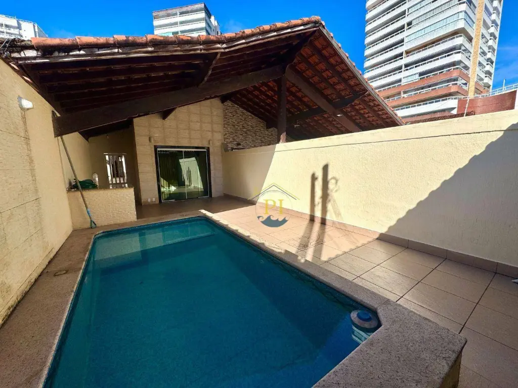 CASA COM PISCINA NA VILA GUILHERMINA EM PRAIA GRANDE-SP.