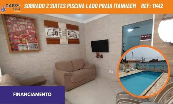 SOBRADO À VENDA - 2 Dormitórios, sendo 2 Suítes - Piscina - Lado Praia - Financiamento - Itanhaém