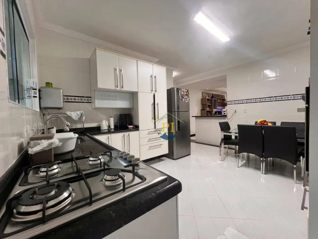 Sobrado com 3 dormitorios, 3 suítes na casa principal e 2 dormitórios com banheiro na Edícula, mobiliada, 6 vagas de garargem, piscina, churrasqueira, 300 mts da praia, portão automático, cerca elétrica, ar condicionado.