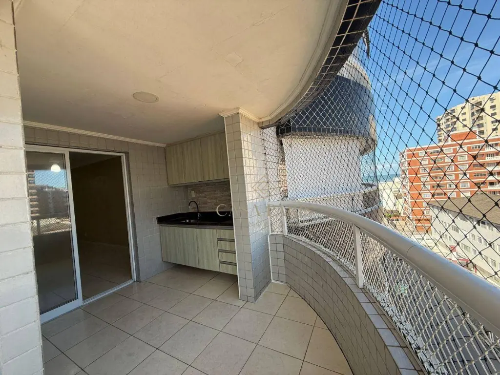 Excelente apartamento, frente rua, vista mar, com 02 dormitórios sendo 01 suíte com planejados, sala 02 ambientes ampla com sacada, cozinha, WC social, área de serviço e 01 vaga de garagem.