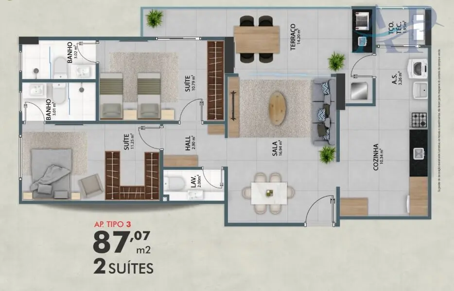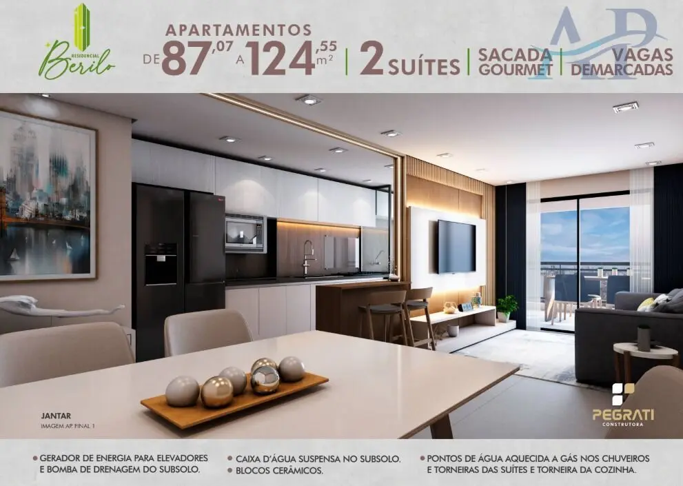 Imóvel com entrega prevista para Maio de 2026, com 2 dormitórios, sendo suíte, lavabo, varanda Gourmet, sala para dois ambientes integrada com a sacada, área de serviço e uma vaga de garagem Demarcada. Acabamento em porcelanato, infraestrutura para o ar-condicionado pronta e aquecimento à gás..
