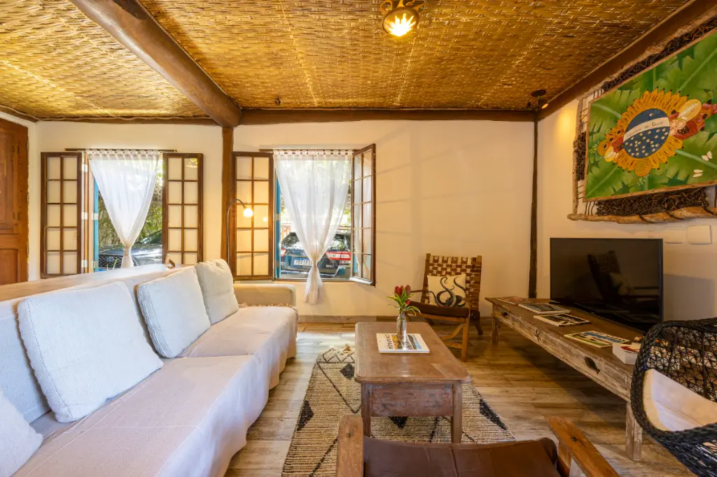 Para os amantes de esportes e lazer ao ar livre, a casa conta com uma quadra privativa de beach tênis, perfeita para momentos de diversão entre amigos e família.