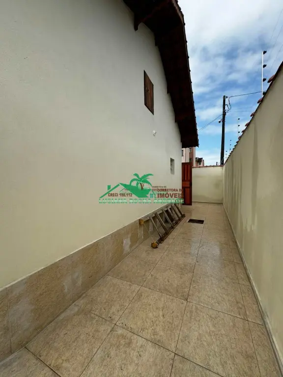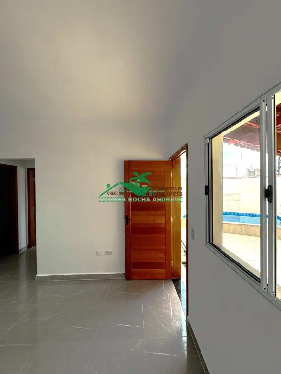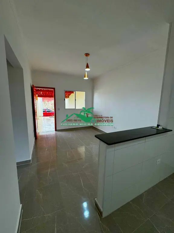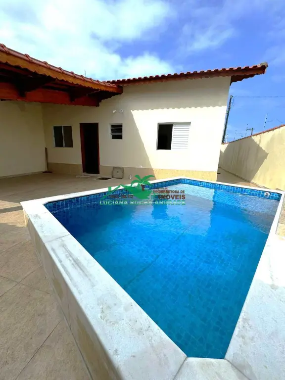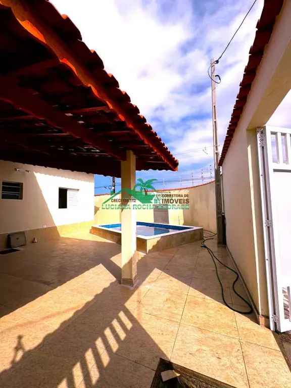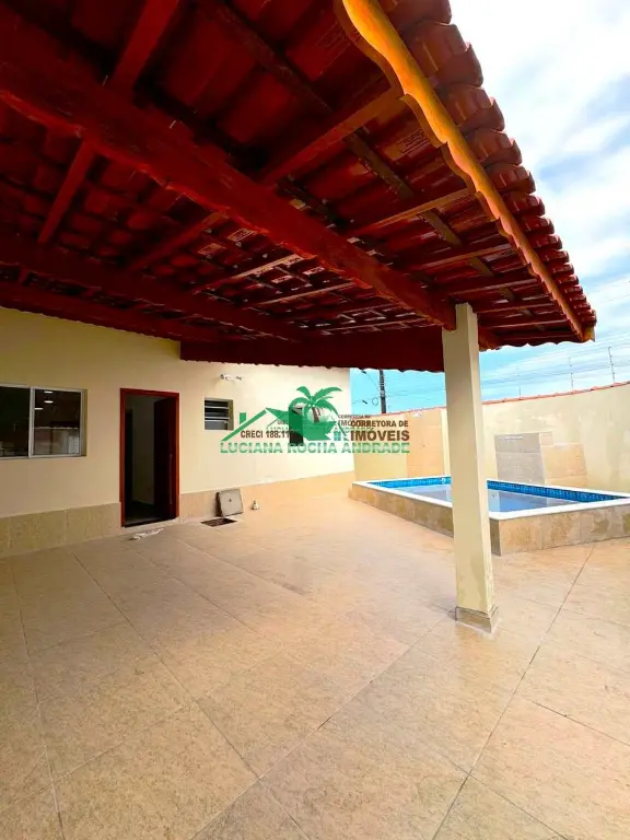 Linda casa composta de 2 dormitórios, sendo uma suíte, sala de estar, cozinha americana, wc social, área de serviço, uma ampla área coberta com 2 vagas de garagem, piscina com cascata, ducha, tudo isso a 740 metros da praia, perto de mercado Atacadista, farmácia, escola, transporte e muito mais.